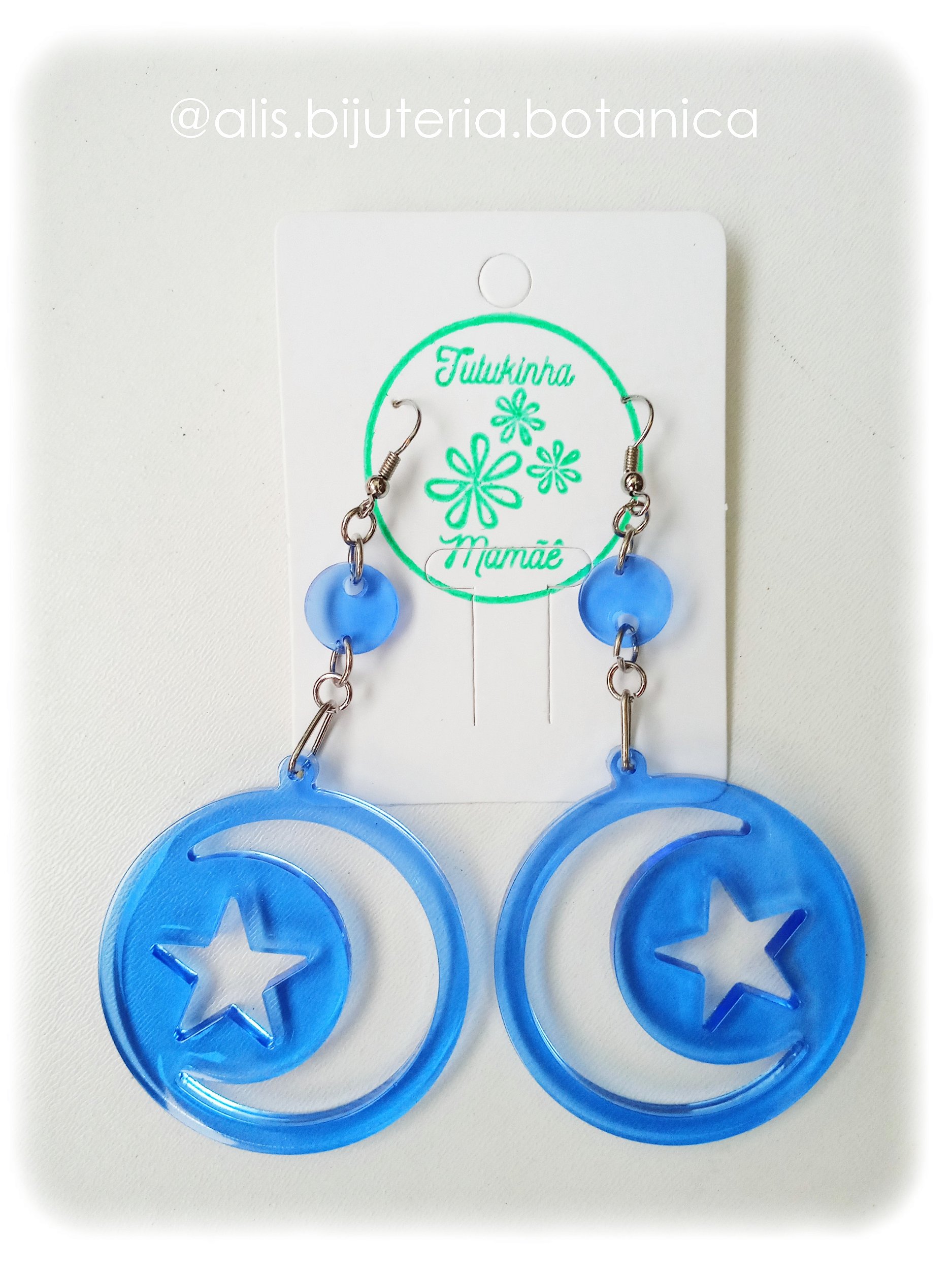 Brinco grande, pendente, tipo anzol, translúcido, transparente, com aproximadamente 10cm de altura. Devido a configuração de cada monitor, poderá haver uma leve alteração na cor. Embalagem com 1 par.