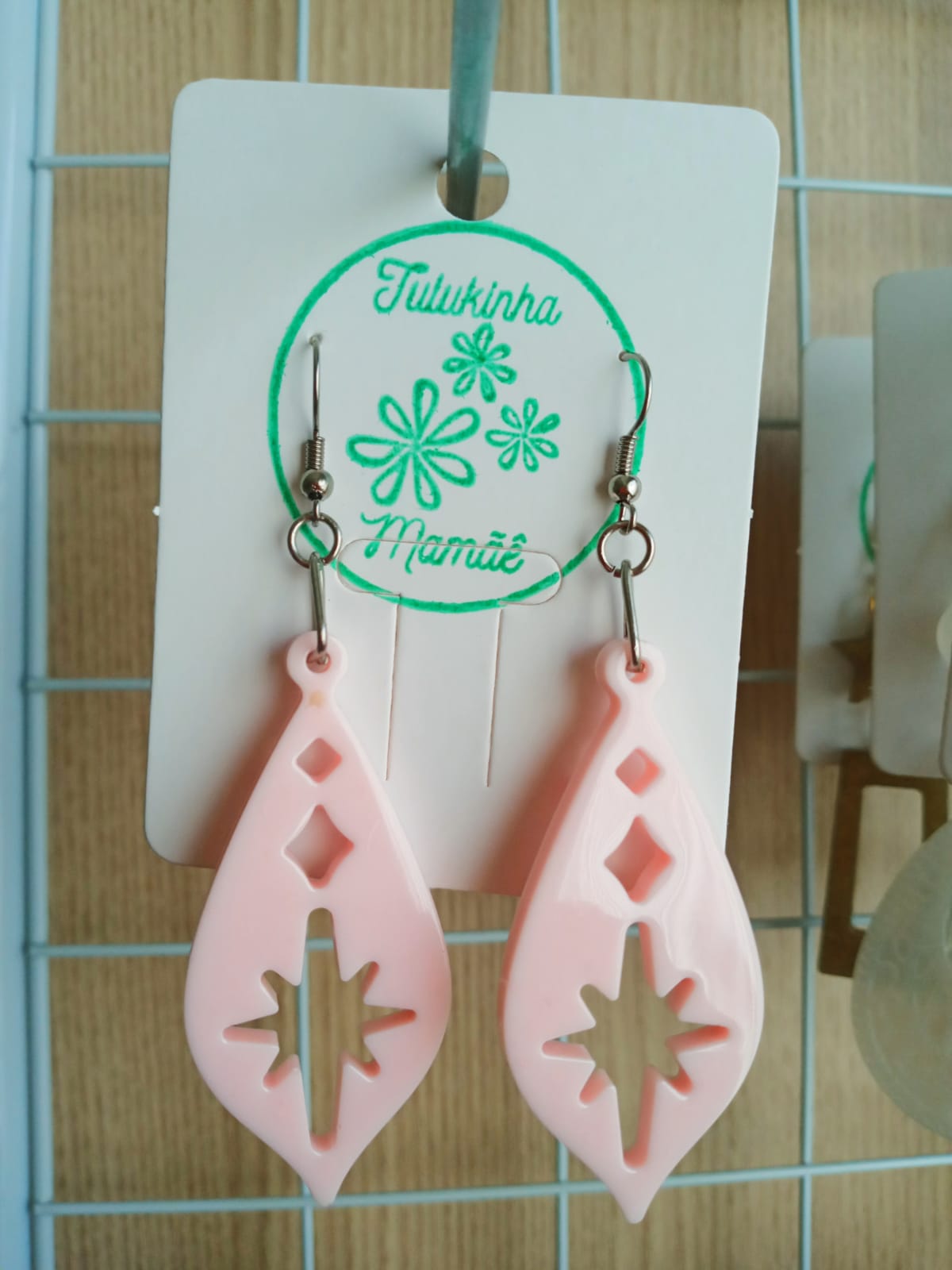 Brinco grande, pendente, tipo anzol, com aproximadamente 8,5cm de altura. Devido a configuração de cada monitor, poderá haver uma leve alteração na cor. Embalagem com 1 par.