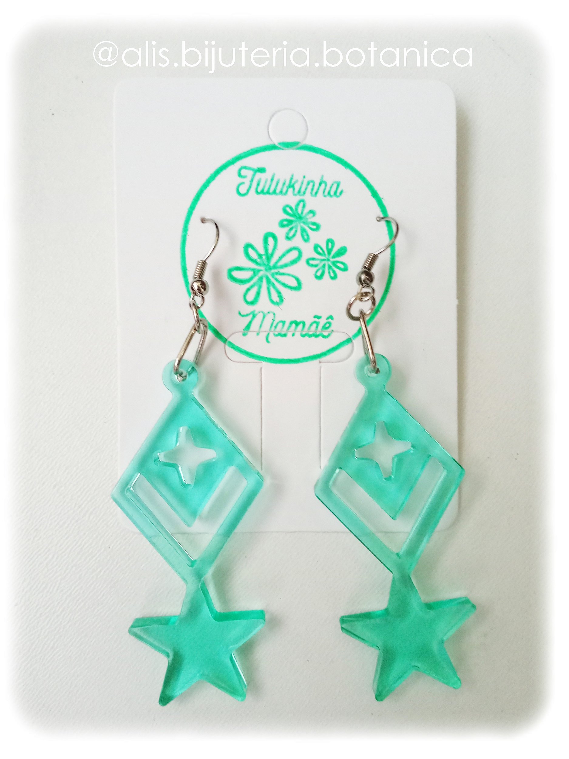 Brinco grande, pendente, tipo anzol, translúcido, transparente, com aproximadamente 8,5cm de altura. Verde translúcido. Devido a configuração de cada monitor, poderá haver uma leve alteração na cor. Embalagem com 1 par.