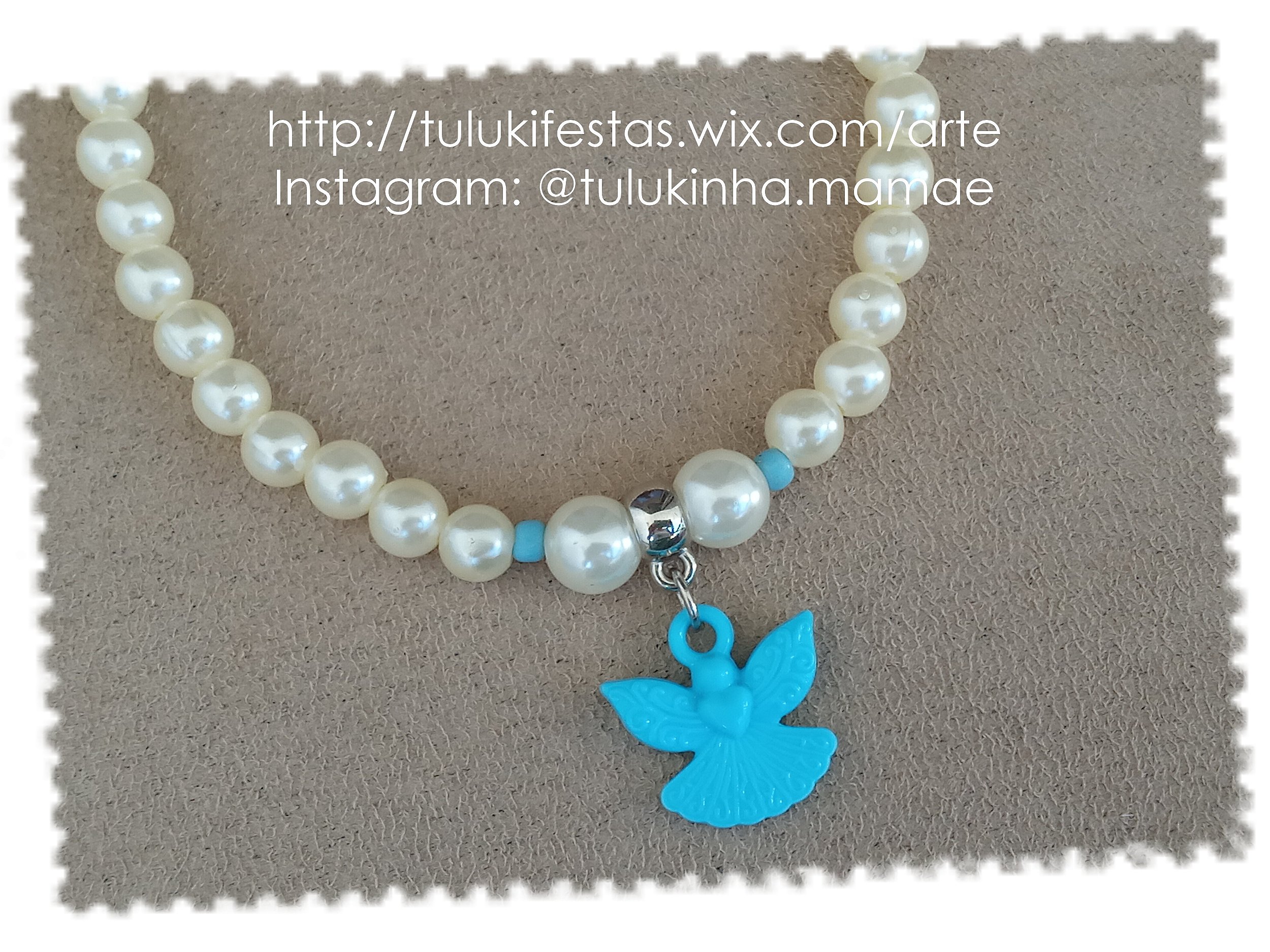 Colar em pérolas, com pingente anjo e fecho lagosta. Sob encomenda, atente aos prazos. Pelo whatsapp 71 99103-6601, você pode escolher a cor do pingente. Devido a configuração de cada monitor, poderá haver uma leve alteração na cor. Embalagem com 1 unidade. Para princesas. Mãe de menina. Cheia de charme. Bijuteria Infantil. Batizado. Santo Anjo do Senhor.