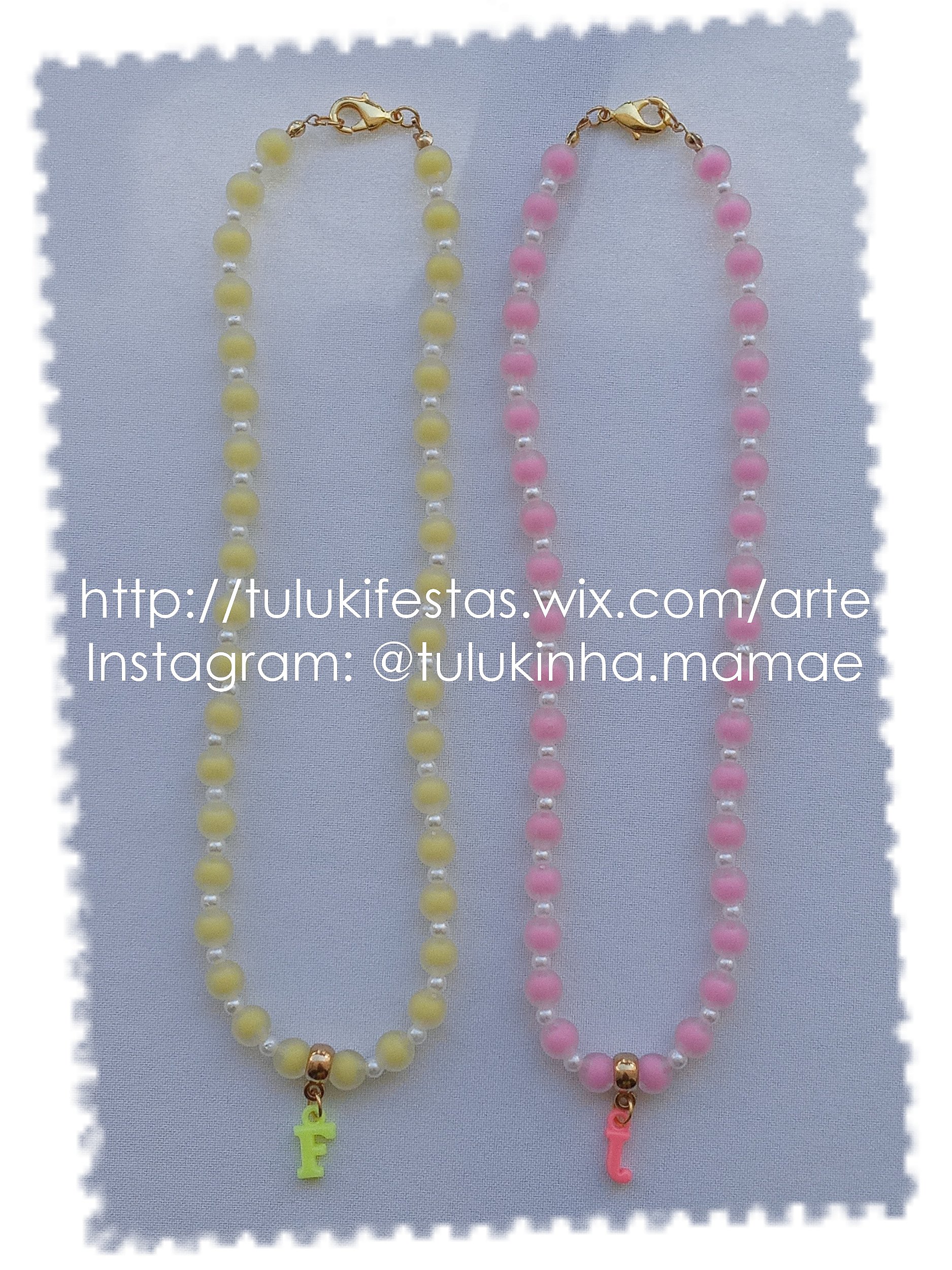 Colar de miçangas translúcidas, com pingente letra e fecho lagosta. Combine pelo whatsapp 71 99103-6601 qual a sua letra. Devido a configuração de cada monitor, poderá haver uma leve alteração na cor. Embalagem com 1 unidade. Para princesas. Mãe de menina. Cheia de charme. Bijuteria Infantil.