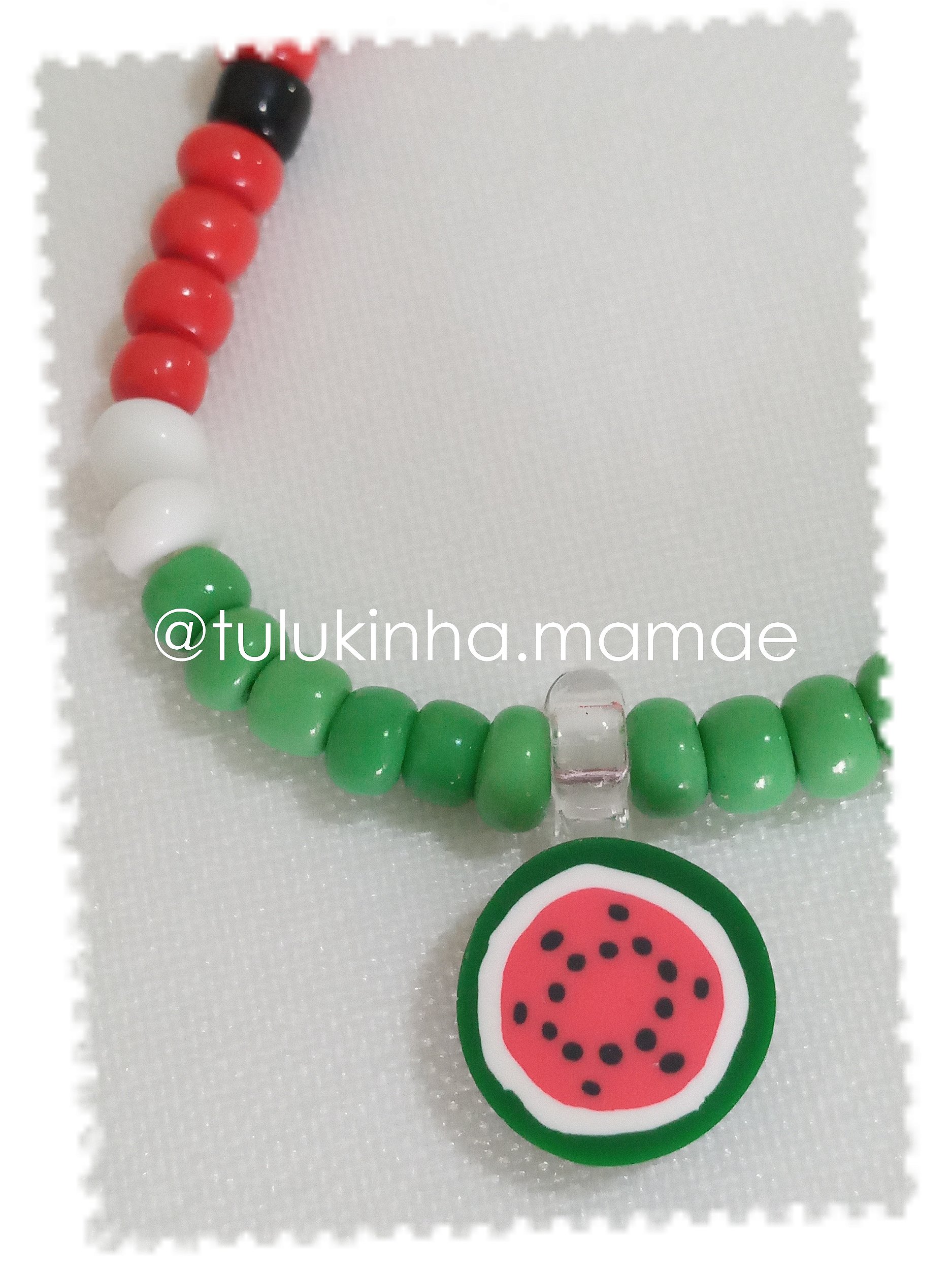 Colar infantil, com miçangas irisadas (brilhantes), miçangão, pingente frutinha e fecho lagosta. Embalagem com 1 unidade. Para princesas! Mãe de menina. Bijuteria Infantil. Ideia de Presente.