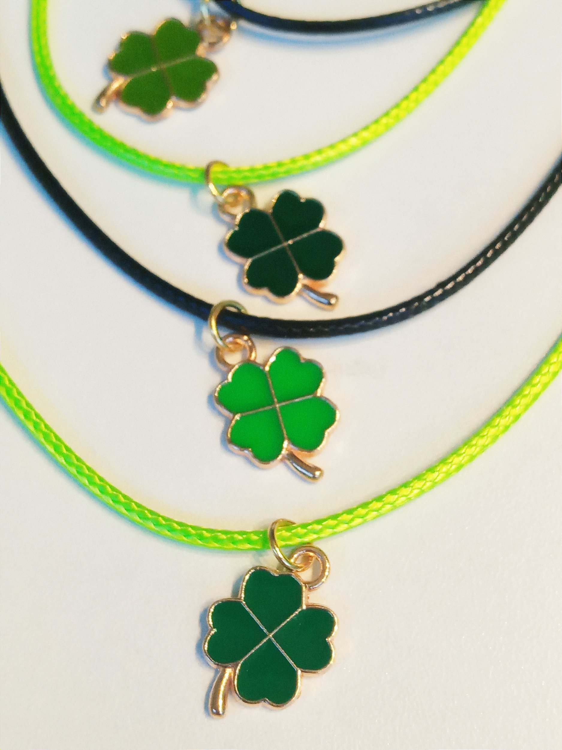 Cordão de poliamida encerado e trançado (verde) e courino trançado (preto), com aproximadamente 44cm + 5cm de extensão e 1,5mm de largura. Fecho lagosta. Pingente em liga de zinco. Devido a configuração de cada monitor, poderá haver uma leve alteração na cor. Embalagem com 1 unidade.
