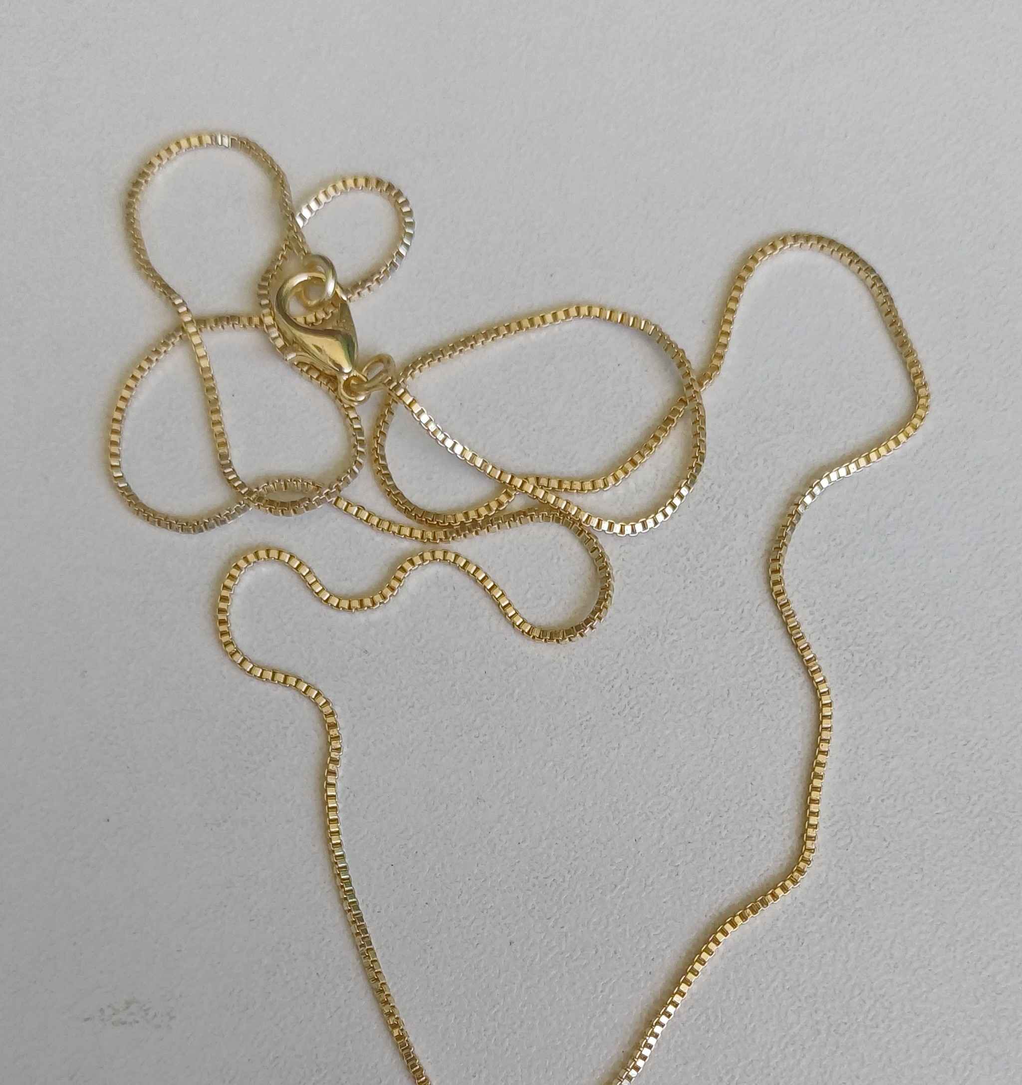 Corrente Veneziana, folheada a um milésimo de ouro 18K e verniz cataforético que realça o brilho e protege, com tamanho aproximado de 44 cm.