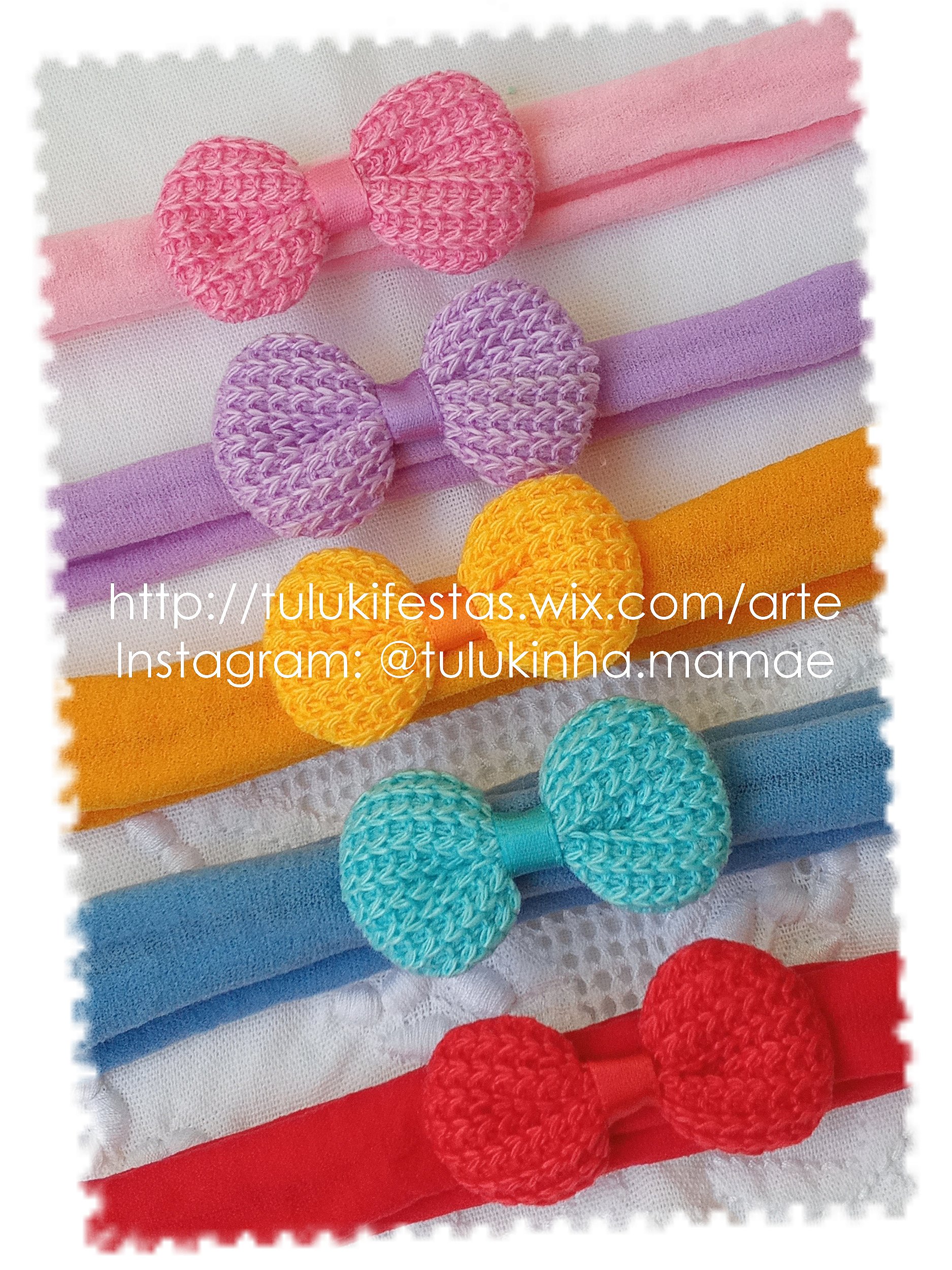 Faixinha com aplique de laço em crochê. Passadeira. Diadema. Arco de Cabelo. Recém-nascido.