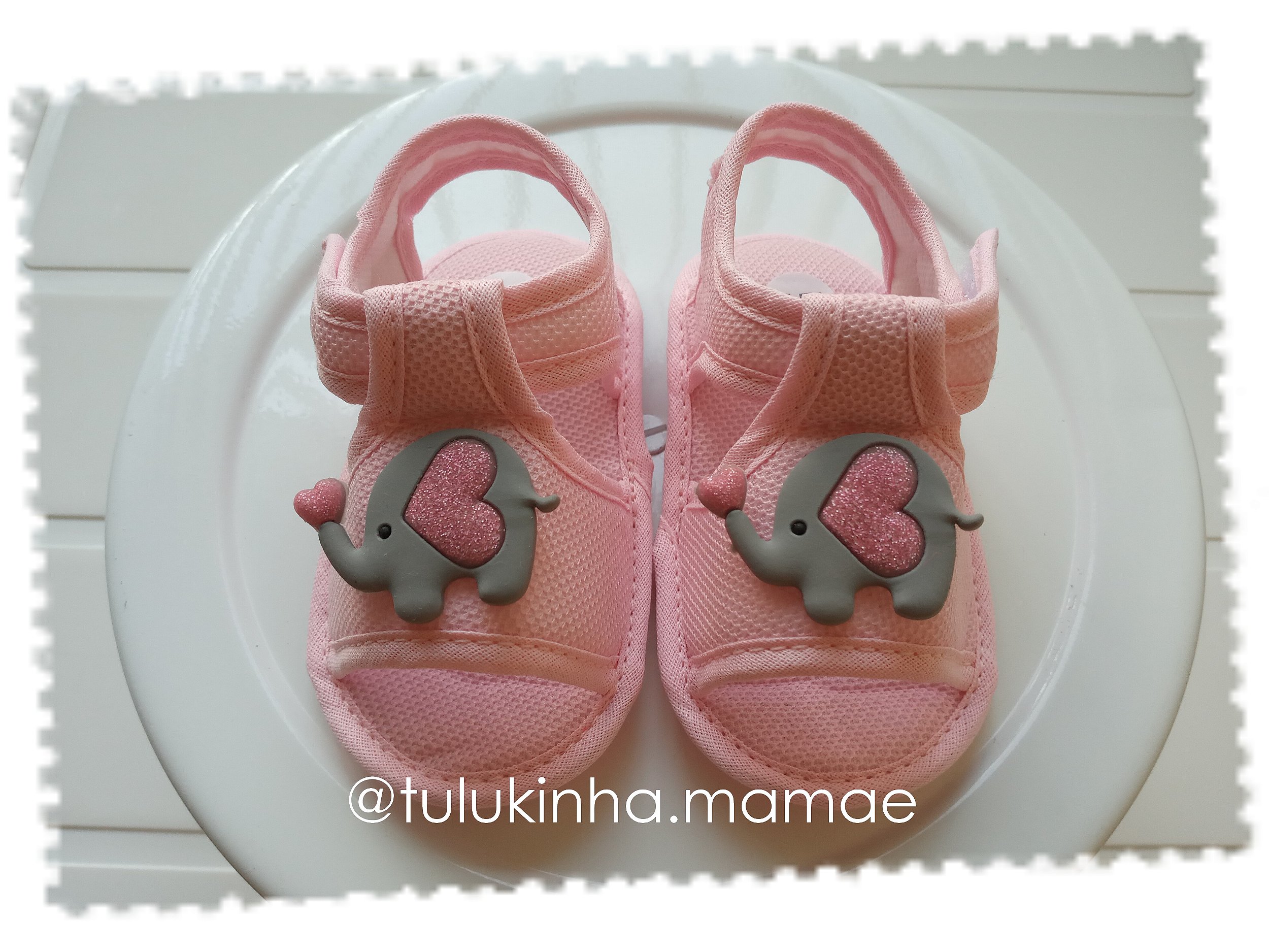 Sandália baby em tecido para princesas! Tema Elefantinha Rosa.