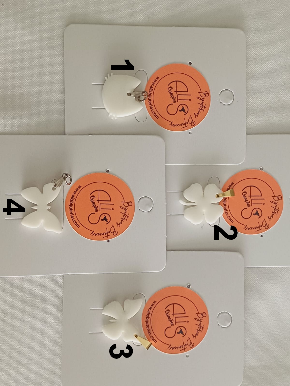 Acessório branco com ferragem em aço, dourada ou prata, medindo aproximadamente entre 1,5cm e 2cm (sem a ferragem).