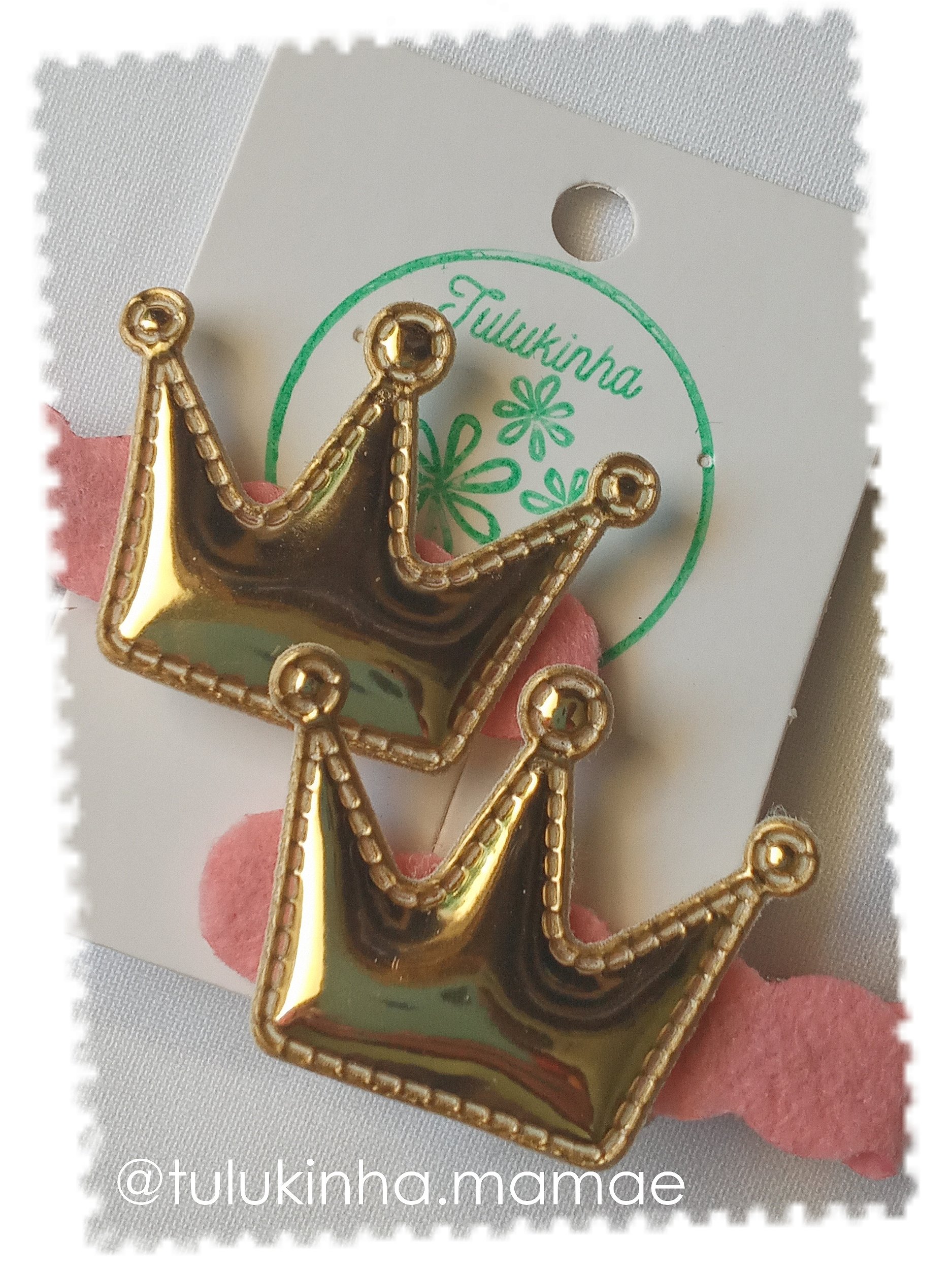 Presilhas infantis fofinhas, prendedor tipo bico de pato. Deixa um cabelo arrumadinho e organizado! Tamanho aproximado de cada coroa dourada: 3,5cm x 4,5cm. Embalagem com 1 par. Peça ideal que prende todos os tipos de cabelos, longos ou curtos: cacheado, afro, liso. Volta às aulas.